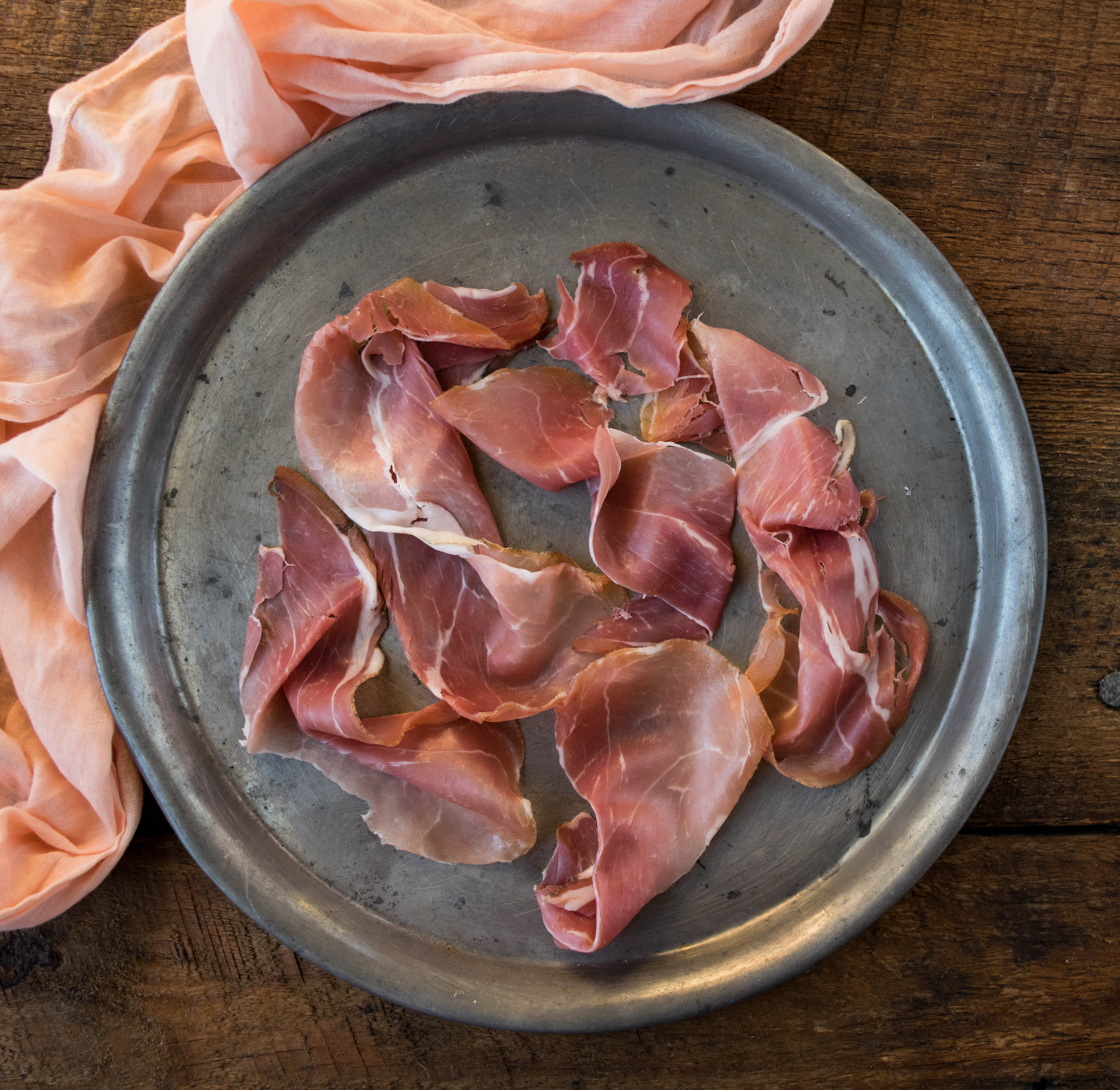 - On a baking sheet, spread out a few pieces of prosciutto.