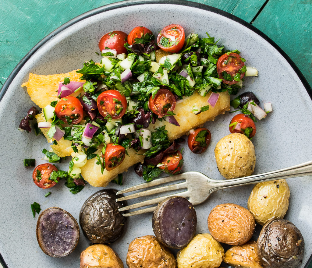 Halibut with Olive Tabbouleh and Duck Fat Potatoes