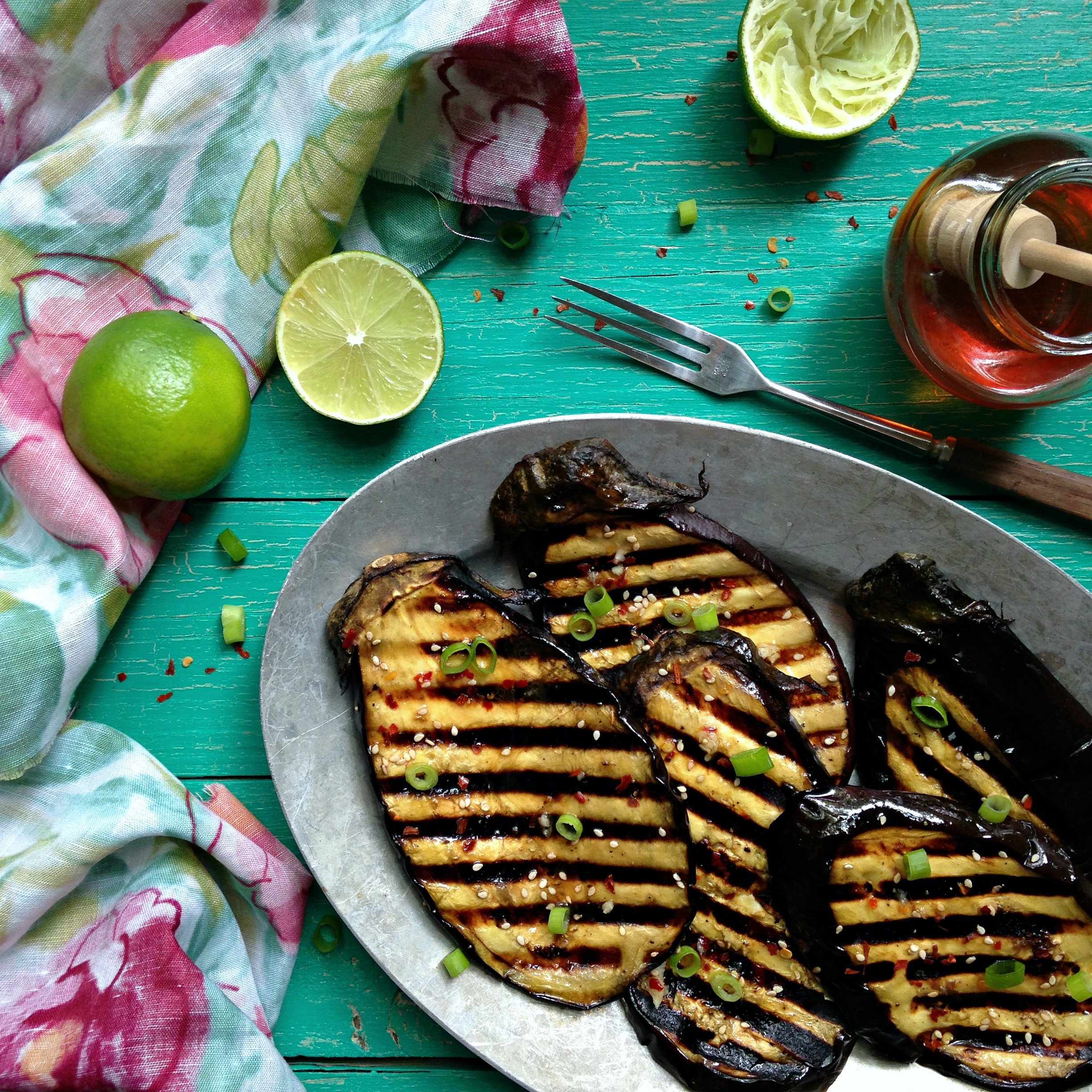 In Greece, grilled eggplant is usually cooked with olive oil, lemon, and oregano. I love playing around with the seasonings, and this Asian-inspired one might be my favorite. It makes it onto our summer rotation pretty regularly.