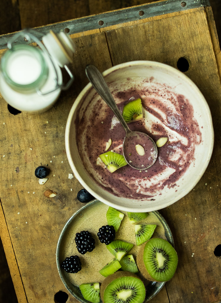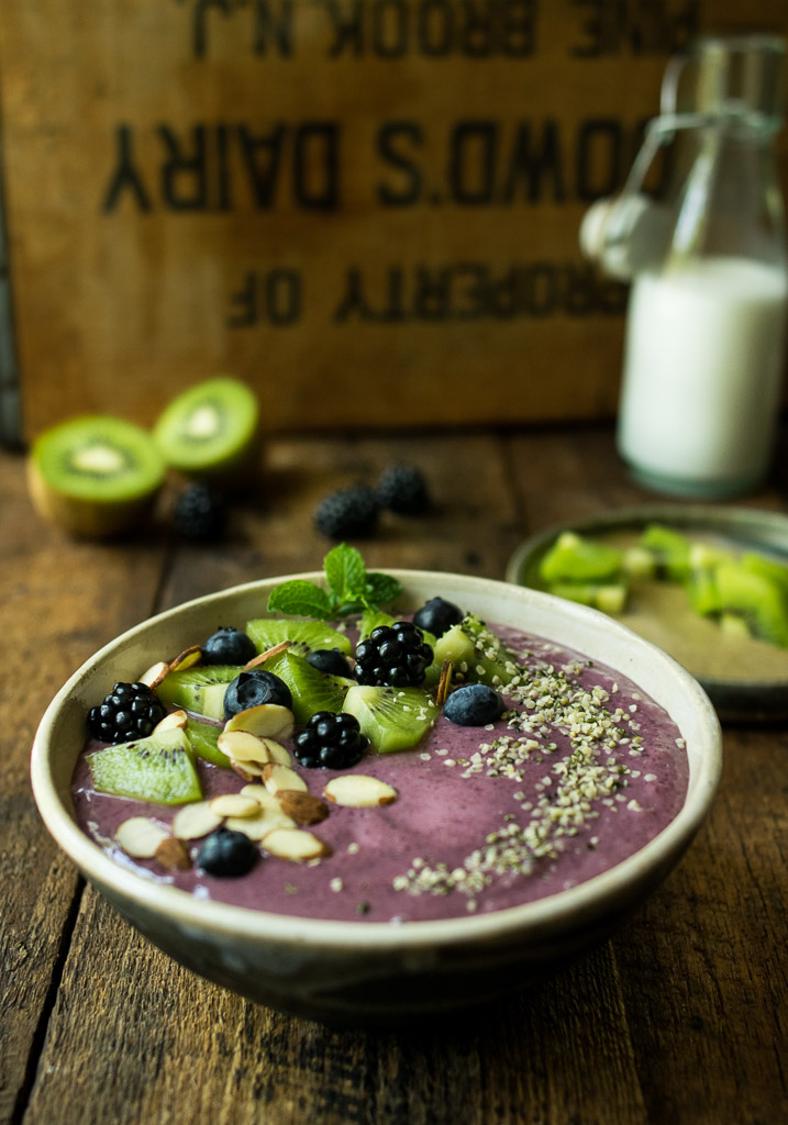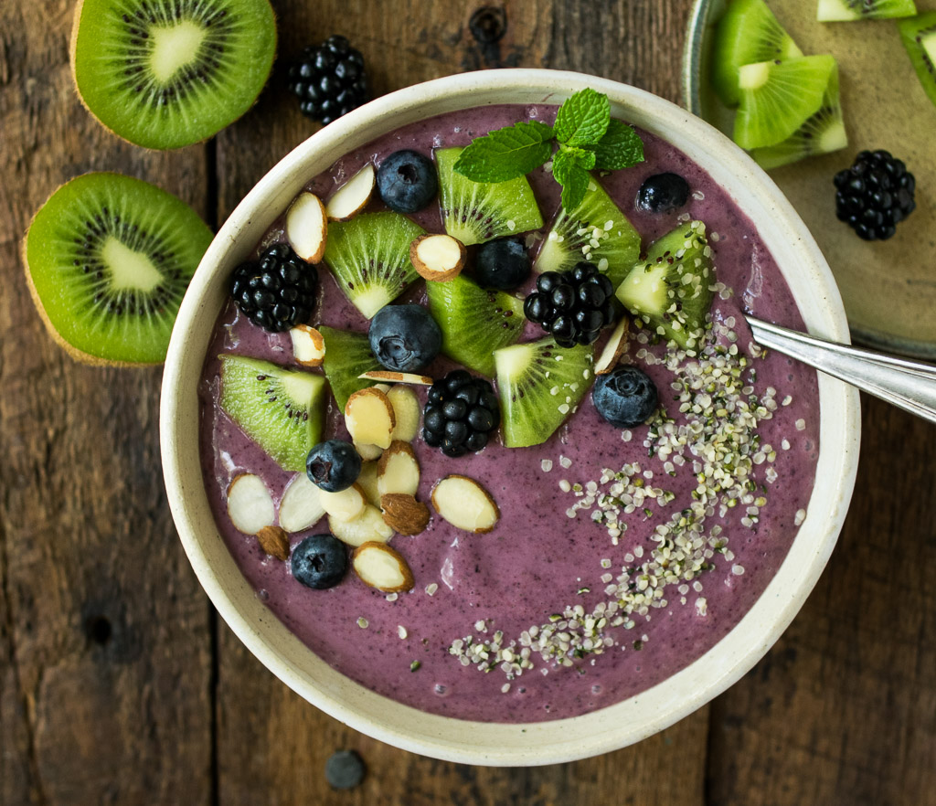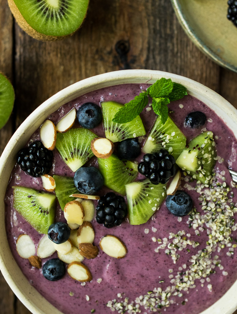 Mixed Berry Smoothie Bowl with Kiwi and Hemp seeds