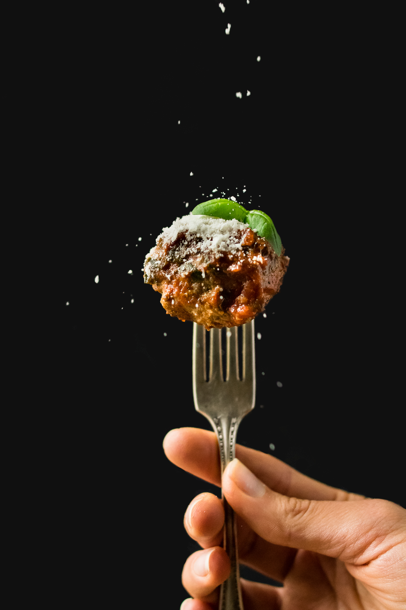 A heavy snowfall of parmesan sealed the deal on these wild boar and mushroom meatballs.